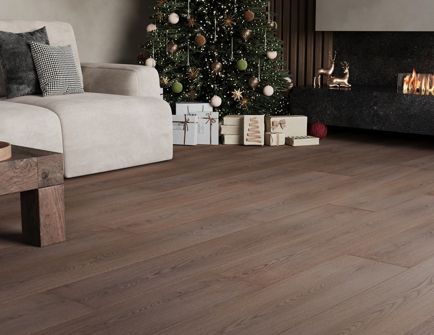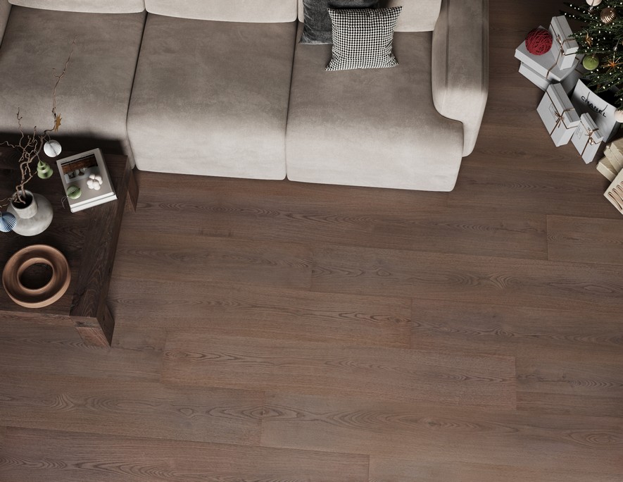 Покрытие сочетает в себе прочность и визуальную лёгкость: широкие панели формируют цельный рисунок пола, а глубокая текстура древесины добавляет естественности. Такой пол не только красиво выглядит, но и выдерживает повседневные нагрузки, оставаясь аккуратным и стабильным.